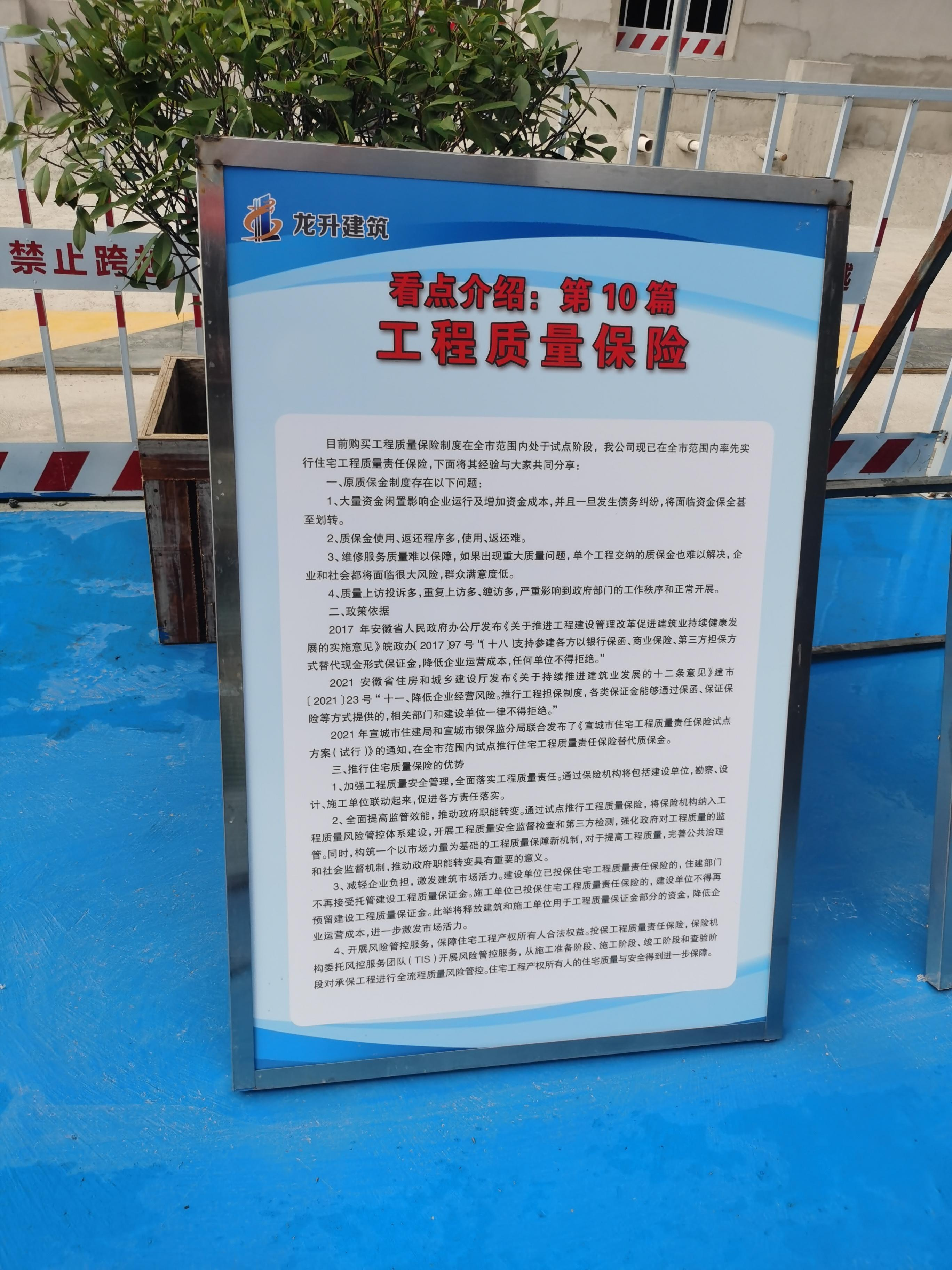 房屋住宅關(guān)乎民生福祉。為更好地提高住宅工程質(zhì)量水平,減少住宅工程質(zhì)量投訴,維護(hù)住宅所有權(quán)人的合法權(quán)益,國(guó)元保險(xiǎn)經(jīng)紀(jì)公司積極推動(dòng)住宅工程質(zhì)量責(zé)任保險(xiǎn)項(xiàng)目,在宣城市住建部門的統(tǒng)籌和引導(dǎo)下,在全市范圍內(nèi)開(kāi)展住宅工程質(zhì)量責(zé)任保險(xiǎn)制度試點(diǎn)工作。一方面,通過(guò)保險(xiǎn)的形式代替建設(shè)工程質(zhì)量保證金,減輕企業(yè)負(fù)擔(dān),激發(fā)建筑市場(chǎng)活力。另一方面,引進(jìn)TIS風(fēng)險(xiǎn)服務(wù)機(jī)構(gòu),對(duì)承保工程進(jìn)行全流程質(zhì)量風(fēng)險(xiǎn)管控,進(jìn)一步保障住宅工程產(chǎn)權(quán)所有人合法權(quán)益,提高全市住宅工程質(zhì)量水平。