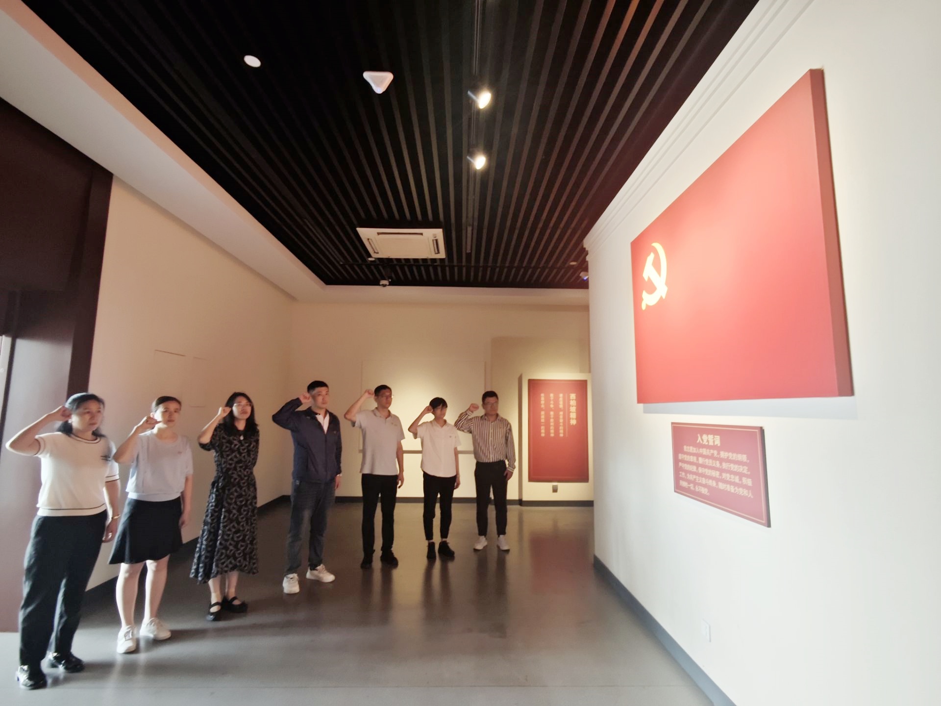 參觀結(jié)束后,進(jìn)行了重溫入黨誓詞活動(dòng),全體黨員面向黨旗莊嚴(yán)宣誓。通過重溫入黨誓詞,黨員再次明確自己的政治身份和使命擔(dān)當(dāng),增強(qiáng)對(duì)黨的歸屬感和認(rèn)同感,時(shí)刻提醒自己是一名共產(chǎn)黨員,應(yīng)當(dāng)始終保持共產(chǎn)黨員的先進(jìn)性和純潔性。